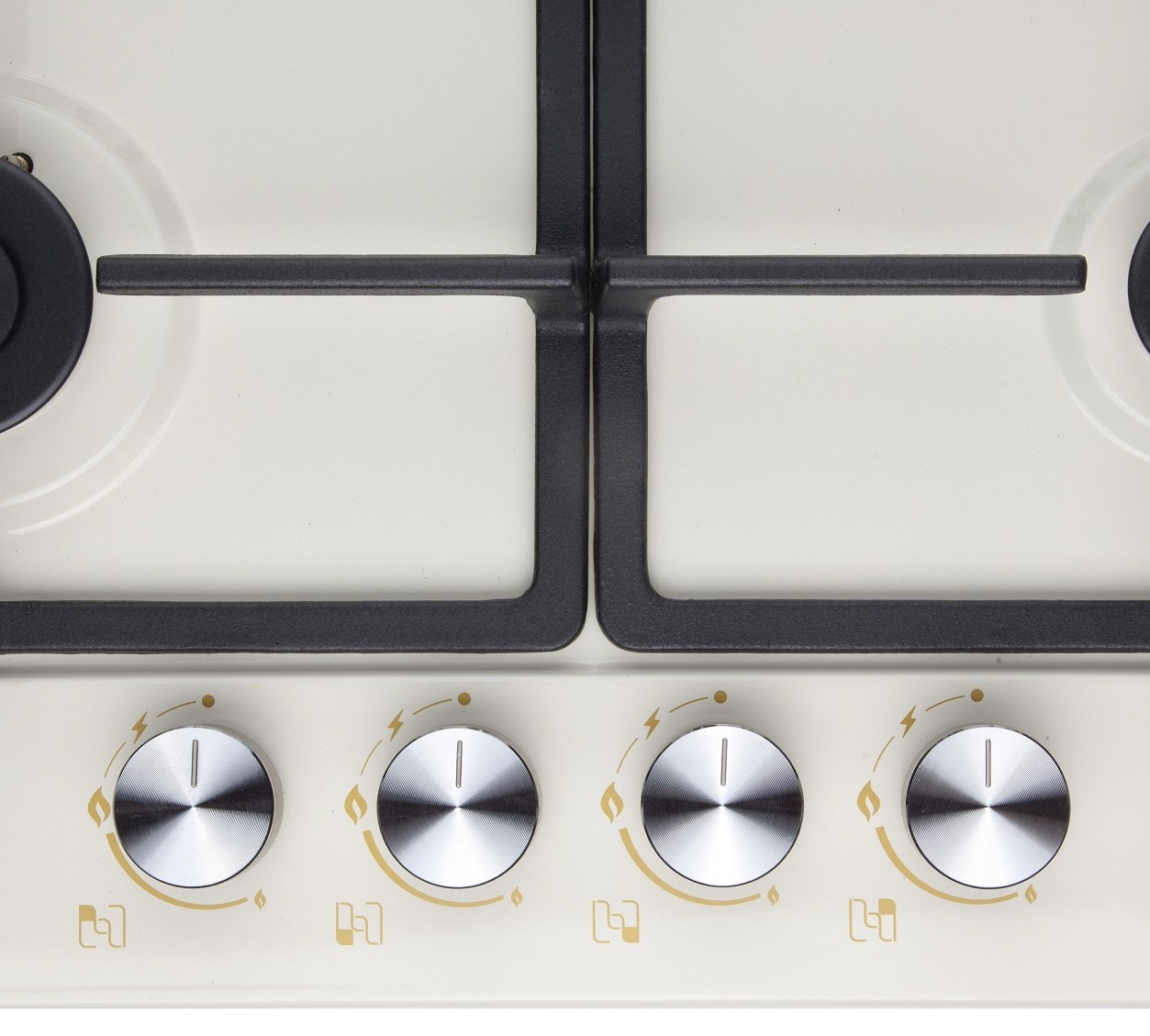 • Тяжелые цельнометаллические ручки управления с отделкой термостойким пластиком в цвете варочной панели