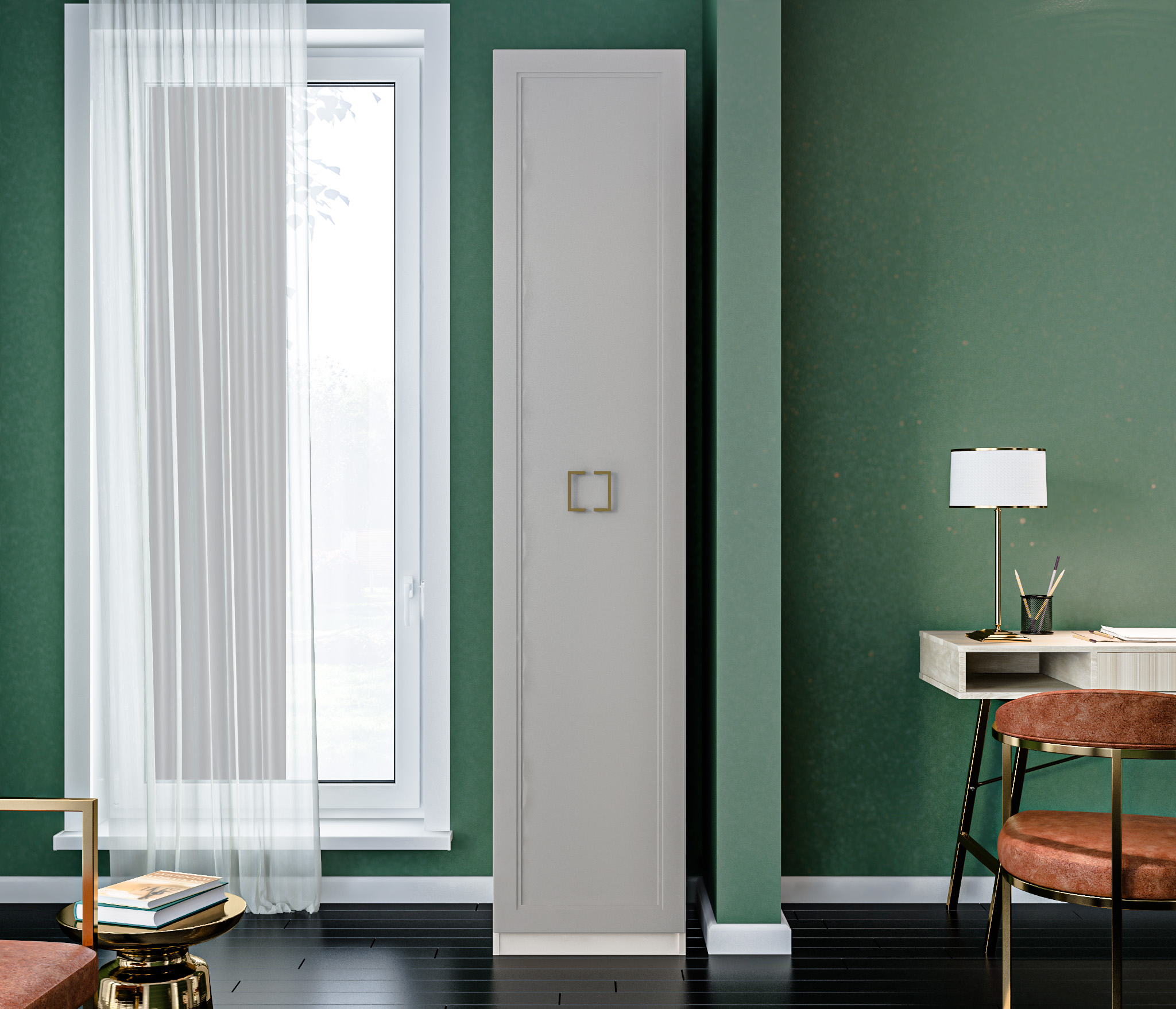 Золотистые ручки и ножки коллекции ""Ассоль"" добавляют неповторимый шик и изысканность, завершая образ тонким и стильным блеском. Эти акценты создают атмосферу роскоши и утонченности. Они играют роль визуального украшения, дополняя общий вид мебели и придавая ей особый шарм и элегантность.