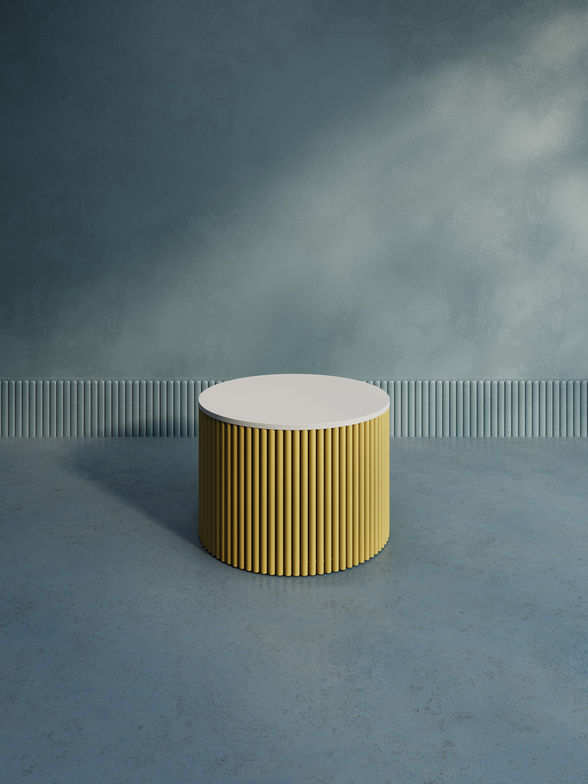 Дизайнерский круглый стол с металлическим трубчатым подстольем. Диаметр подстолья D600 мм. Столешница ЛДСП 16мм, диаметр D600 мм. Стандартный вариант - матовая порошковая окраска в золотой, чёрный или белый цвет. На заказ возможно изготовление столешницы ЛДСП в индивидуальном цвете и размере под заказ.